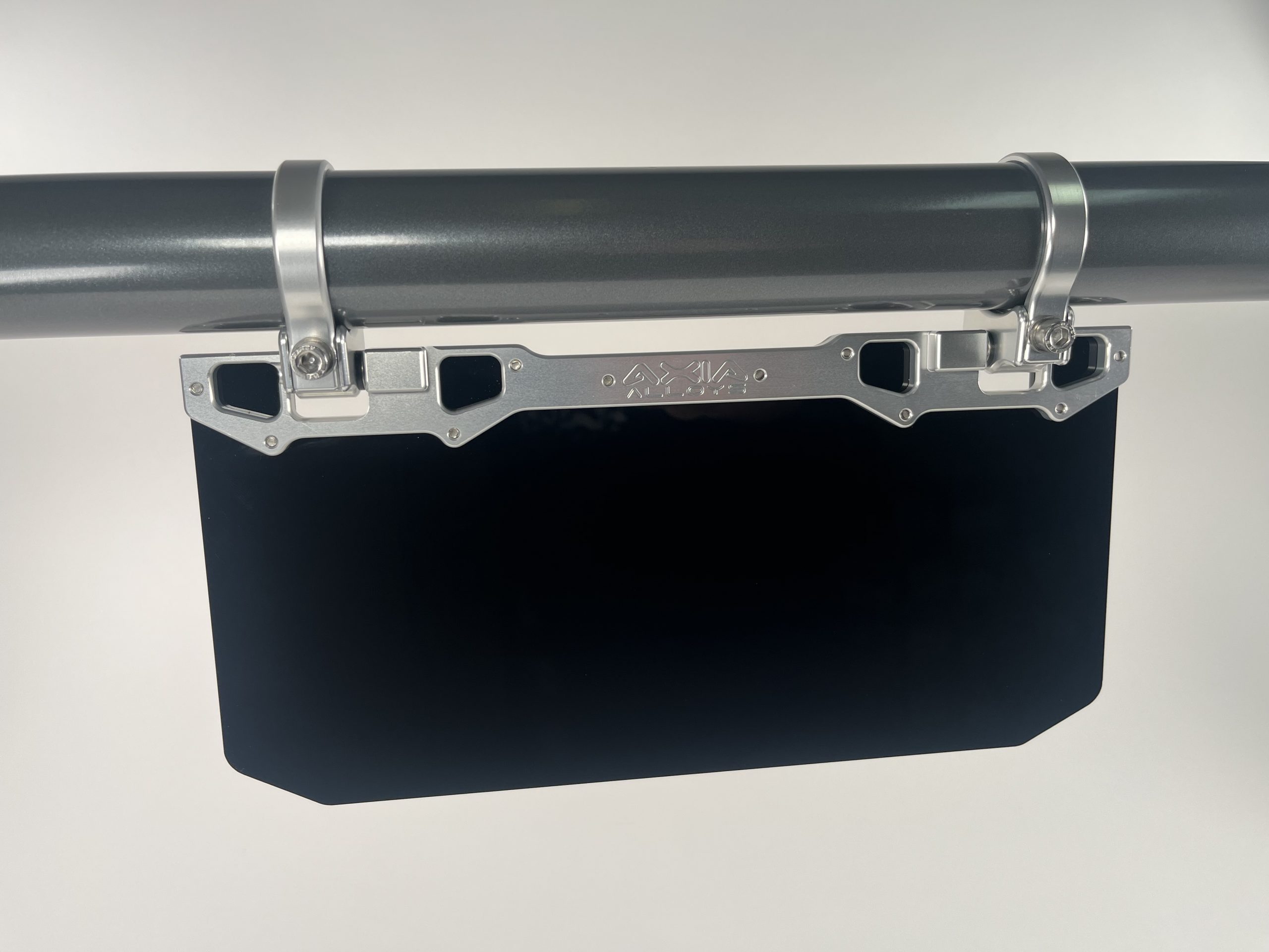 12″ wide sun visor has a narrow 9″ wide mounting width between clamps to allow for install between roll cage gussets and other obstructions.
